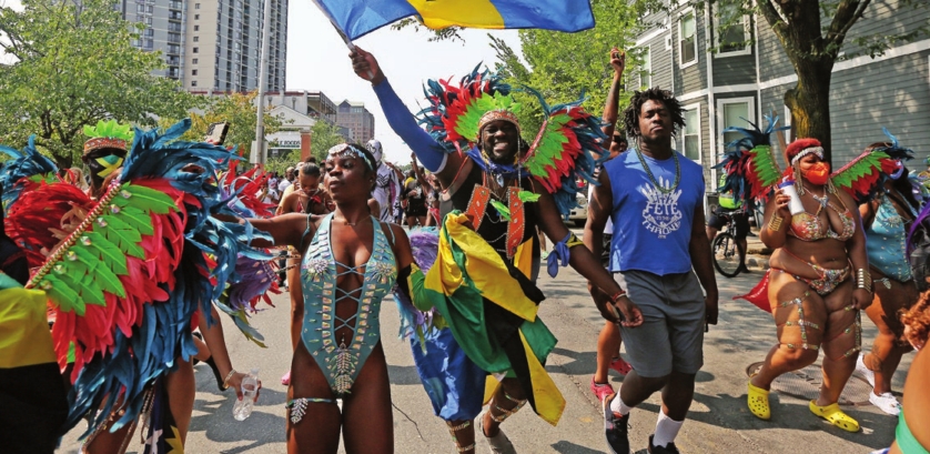 Revelers march in the Cambridge Carnival in Cambridge, Mass. on Sunday, September 12.