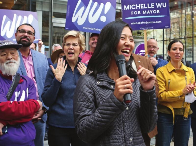 Councilor and mayoral candidate Michelle Wu speaks during an event to