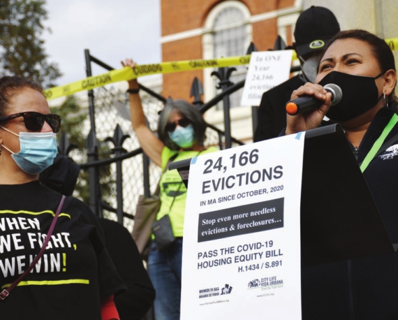 Gathering just over a year after the state’s eviction moratorium expired, advocates from the statewide Homes For All Massachusetts coalition met in front of the Statehouse Thursday to call on legislators to pass a bill designed to protect Massachusetts residents from evictions and foreclosures.