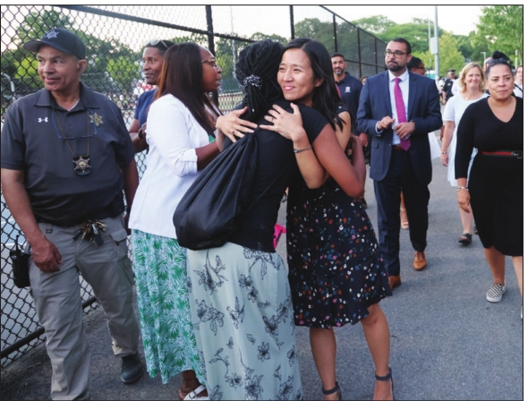 “I think it’s important that law enforcement also comes back when things are positive — and there are so many positive things about this neighborhood,” she said. “But we also know that there are things that we need to do better. So I’m excited to be here in the new role as the U.S. Attorney. Prior to that, I was your elected Suffolk County DA, and we’re going to make sure we show up as the federal government.”
