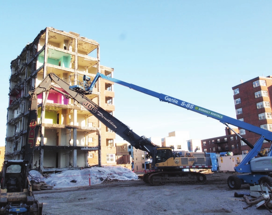 Construction equipment on site for the demolition of the old Whittier Street complex in 2018. New replacement units have been constructed with funding from the HUD Choice Communities program.