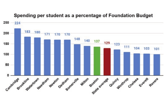 Boston spends less in relation to that formula than most neighboring communities — much less than some of them.