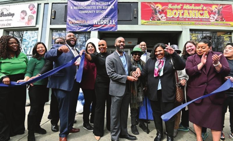 Elected officials including U.S. Rep. Ayanna Pressley and Mayor Michelle Wu turned out Saturday for the opening of a Dorchester district office for state Rep. Chris Worrell and Boston City Councilor Brian Worrell.
