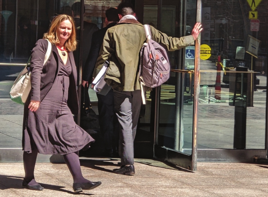 At-large Councilor Erin Murphy exits the Moakley Courthouse after testifying last week.
