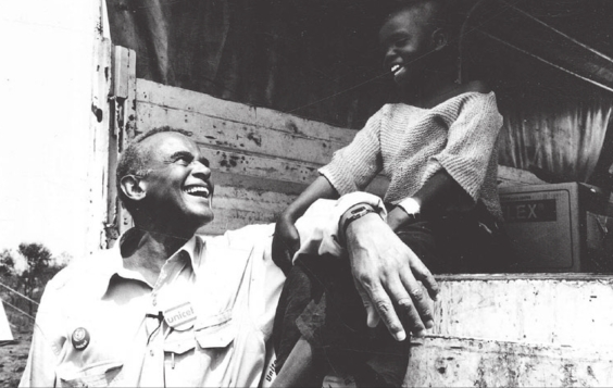 Harry Belafonte and an 11-year-old Rwandan refugee girl, Akimane.