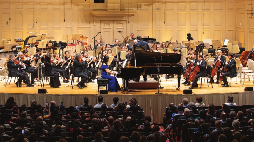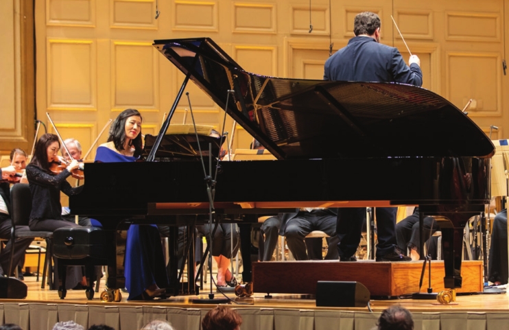 Mayor Wu at the piano as Keith Lockhart conducts.