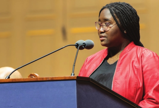 2022 Boston Youth poet Laureate Anjalequa Birkett gives invocation.