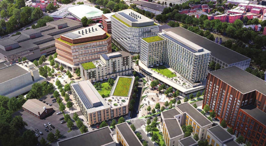 A rendering of the P3 redevelopment proposal by the HYM/City at Peace team, which includes residential, lab and retail space.