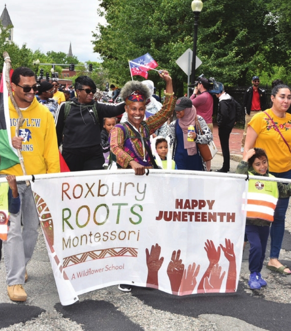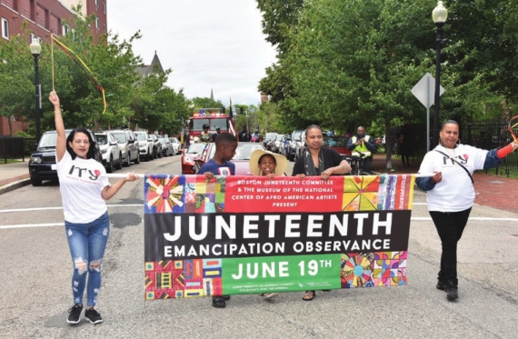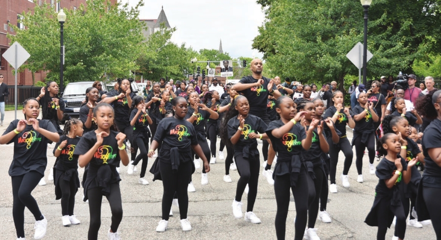 The MajorHype dance team marches in the second annual Juneteenth parade in Roxbury.