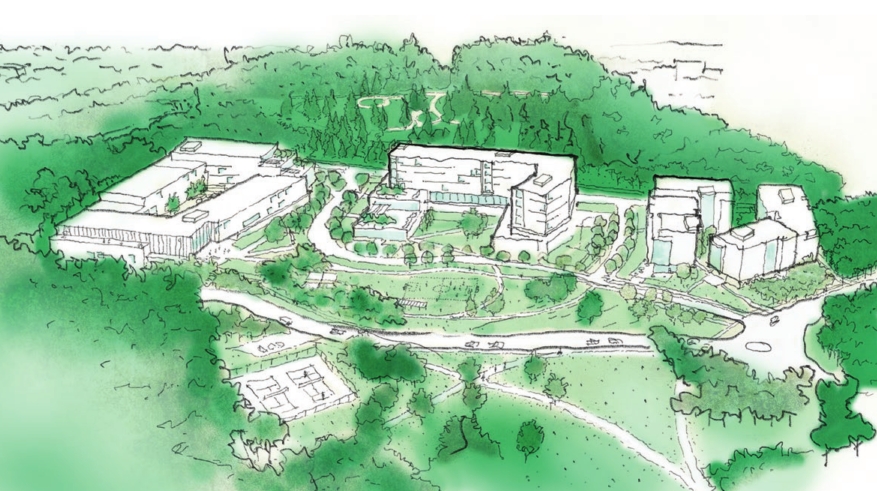 Architect’s rendering of the proposed building complex at the site of the Shattuck Hospital.
