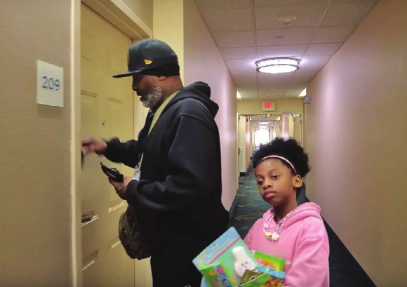 That arrangement lasted three and a half months until the option for a second shift ended and his daughter was no longer allowed to join him at work. He reduced his hours to accommodate his daughter’s schedule and, by early April, was counting the days until he could no longer pay the hotel tab.
