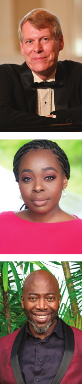 (Clockwise from top left) Pianist, NEC faculty and program curator Timothy Steele, PHOTO: COURTESY NEC, singers Daon Drisdom PHOTO: ANDREW HURLBUT/NEC, Sarah Joyce Cooper PHOTO: DAN BUSLER, Neil Nelson PHOTO: COURTESY NEC, Melissa Joseph PHOTO: COURTESY NEC