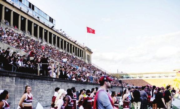 On a rare 78-degree October Saturday, now-19th-ranked Harvard welcomed the Dartmouth Big Green to Harvard Stadium for the Crimson’s annual Fall Fest and Homecoming game. The Oct. 28 match-up drew a crowd of 22,515, the largest since 2009. A pre-game rock band concert serenaded the crowd and tailgaters outside what fans call “The Stadium.”