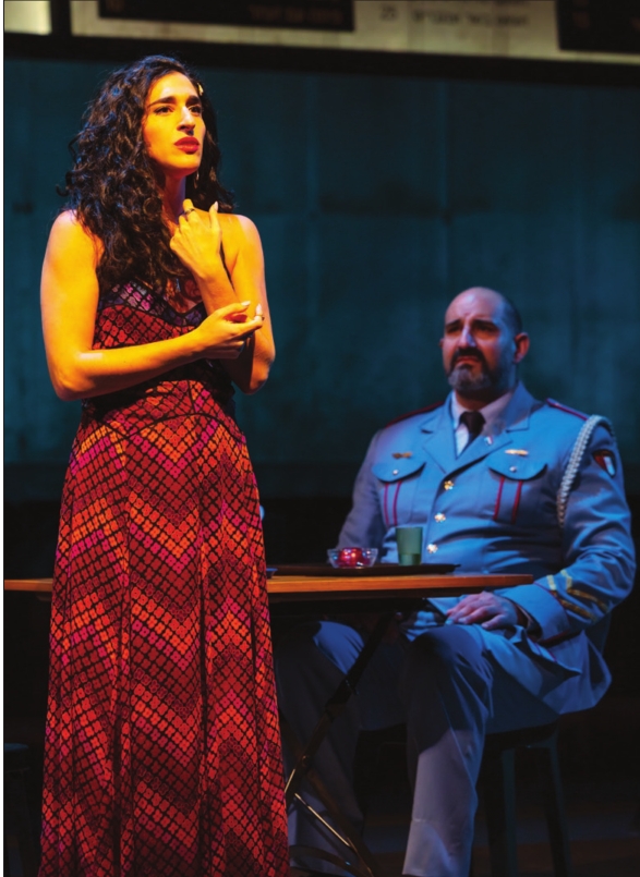 Brian Thomas Abraham is convincingly stolid as Colonel Tewfiq Zakaria, the band’s conductor, and Jennifer Apple is a life force as Dina. She invites him for supper and a stroll. She gets him singing in Arabic and they share enthusiasms — fishing for him, legendary Egyptian singer Umm Kulthum for her — as well as heartbreaks. Later, Dina sings of finding beyond “these walls I build,” “something new, I didn’t notice I’ve been hoping for.”