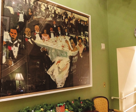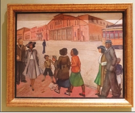 The painting “At the Tremont Street Car Barns” by Allan Rohan Crite hangs in the Governor’s Office in the State House.