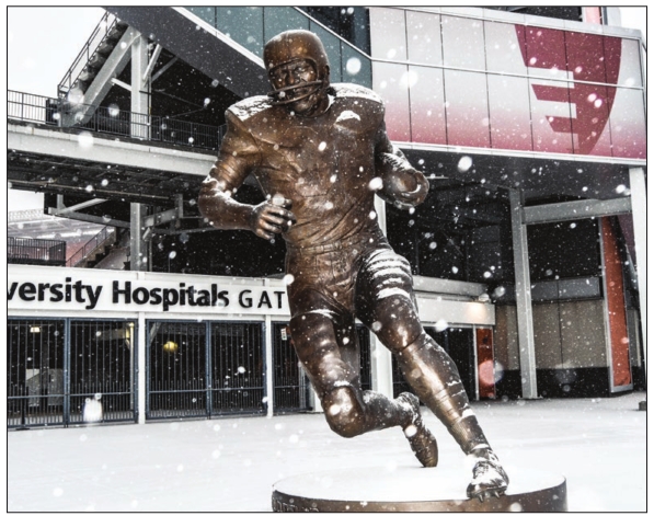 The statue of Hall of Famer Jim Brown at First Energy Stadium in Cleveland.