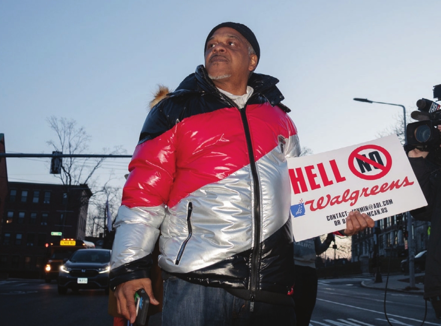 Clifton A. Braithwaite, a Mattapan resident and former at-large city council candidate, holds a sign at a protest opposing the pending closure of the Walgreens Pharmacy on Warren Street Jan. 12. At the protest, Braithwaite said he’d like to see more small-business pharmacies fill the gap left by closing chain pharmacies.