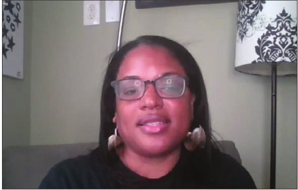 Nicole Porter at the Sentencing Project speaks during a virtual briefing Monday, Jan. 29, 2024, about the group’s push to restore voting rights to people incarcerated for felonies in Massachusetts.