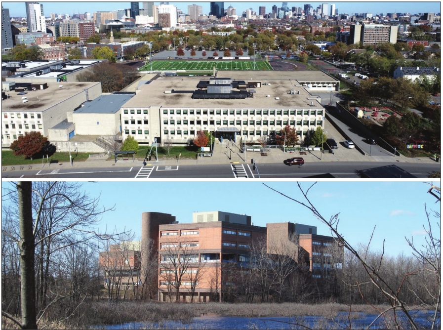 (top) John D. O’Bryant School of Mathematics and Science, Roxbury PHOTO: BOSTON PUBLIC SCHOOLS (bottom) West Roxbury Education Complex PHOTO: JOHN PHELAN Boston Mayor Michelle Wu has backed off from plans to move the O’Bryant School from the heart of the Black community to West Roxbury, meaning that the city’s premiere academy of science and mathematics will remain, at least for now, on Malcolm X Boulevard in Roxbury.