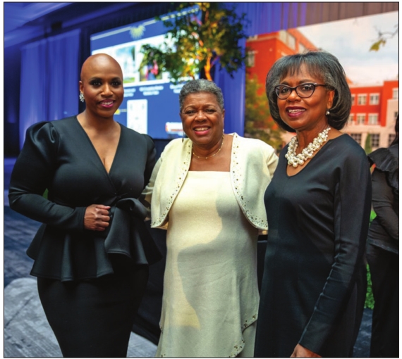 (from left) Congresswoman Ayanna Pressley, RCC Interim President Jackie Jenkins-Scott, and Professor Anita Hill of Brandeis University.
