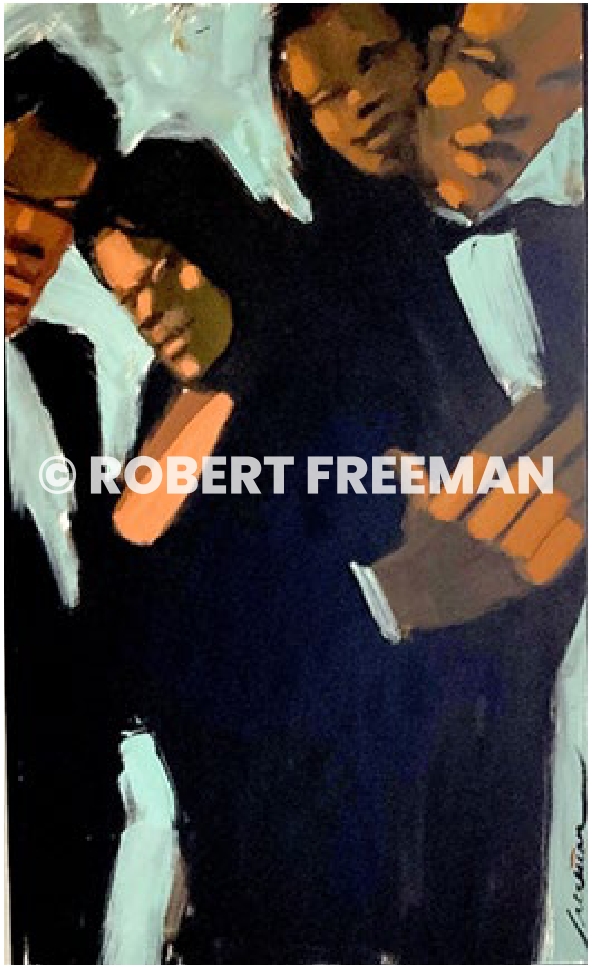 Robert Freeman has exhibited nationally for more than 40 years. His paintings, which explore and celebrate the beauty, elegance and grace of the Black middle class, have been included in the collections of the Museum of Fine Arts Boston, the National Center for Afro-American Artists, the deCordova Museum, Boston Public Library and Brown University. Much of Freeman’s artwork also draws inspiration from his childhood, spent between two cultures: the Gold Coast of West Africa (now Ghana) and the East Coast of the United States. Skillful, brave use of color and gesture are trademarks of his paintings and make his figures nearly abstract.