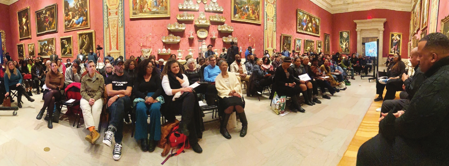 Last Thursday evening, about 90 enthusiastic supporters of Black art gathered at the Museum of Fine Arts Boston’s William I. Koch Gallery to attend a [Virtual] Art Gallery roundtable, themed “The City Talks: Black Art in Colonial Spaces.”