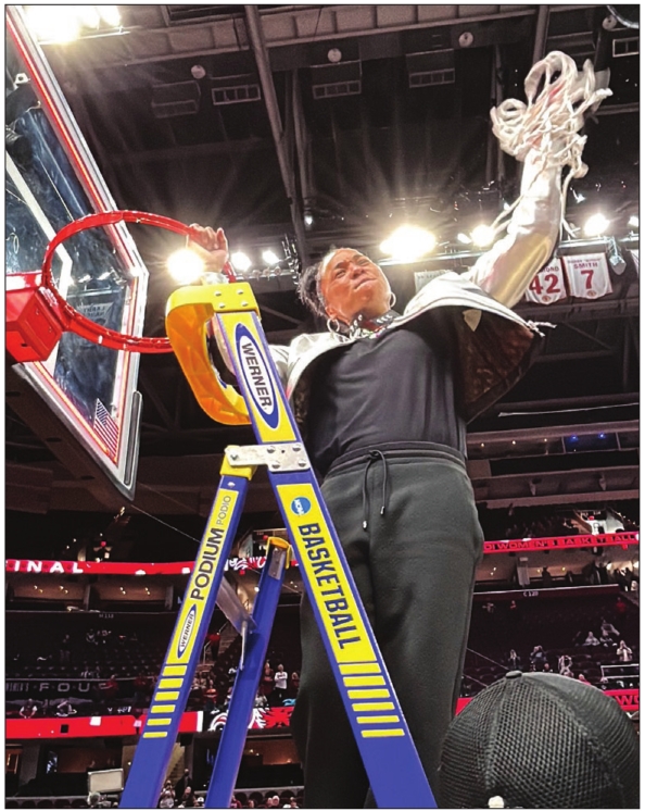 South Carolina coach Dawn Staley cuts down the net to celebrate the Gamecock’s championship win. As the final seconds ticked down on the NCAA Division One Women’s Basketball Championship game, my overwhelming thought for the teams was, “Relief!” When the final buzzer sounded with South Carolina 87 and Iowa 75, I felt delighted for coach Dawn Staley and her Gamecocks team.