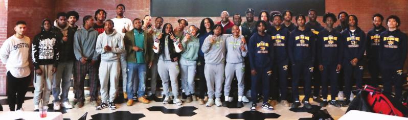 More than 30 students from Cathedral High School, Charlestown High School and New Mission High School — all winners of their respective basketball championships this season — commemorated their victories at the game during a trip sponsored by the Bay State Banner.