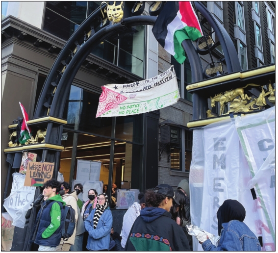 “We have a lot of people power here,” she said of the multi-ethnic coalition of protesters. “We know the majority of Emerson students support a ceasefire.”