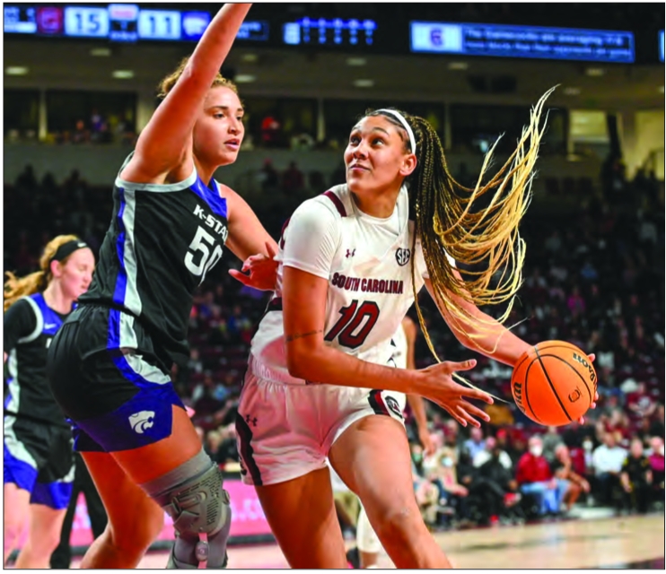 Kamilla Cardoso, now of the Chicago Sky, heads to the basket.