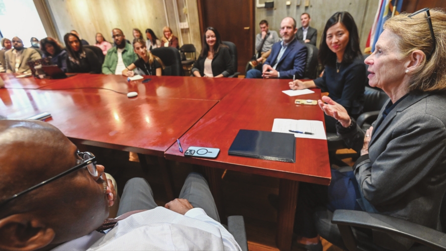 Sheila Dillon,chief of housing for the city of Boston discusses affordable housing with the Mayor and developers on June 12. Taking another step toward bolstering affordable homeownership in Boston, Mayor Michelle Wu announced last week the team of developers who will build 70 residential units on 15 parcels of land in Dorchester and Mattapan.