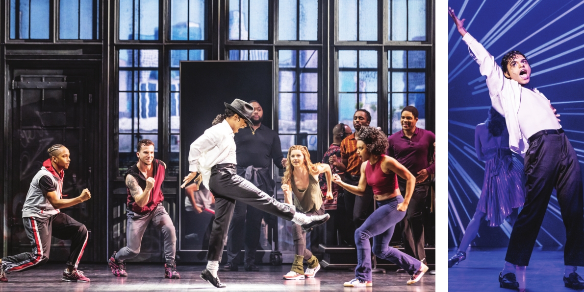 (above) Roman Banks as ‘MJ’ and the cast of the MJ First National Tour. (below) Josiah Benson as ‘Little Michael’ and Anastasia Talley as ‘Katherine Jackson.’