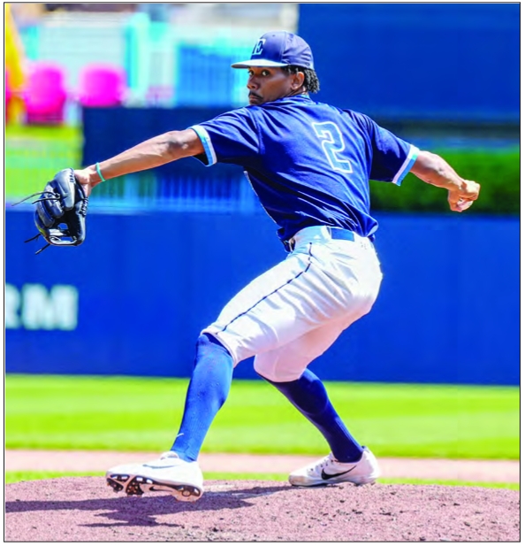 (above) Rusbert Martinez swings away. (below) Edward Peña celebrates his second hit.