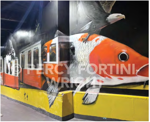 “Orange Line with Fish” by Percy Fortini-Wright.