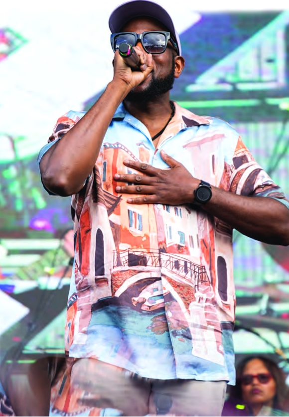 In addition to more than 30 musical artists on the main stage, the festival has a Beat Feet Dance program, where attendees can learn Afro-diasporic dance styles from local choreographers; a Vendor Village of local Blackowned businesses, curated by Black Owned Bos.; and Soul Food Row, a curated selection of food trucks dishing out jollof rice and fried chicken to energize the dance moves.