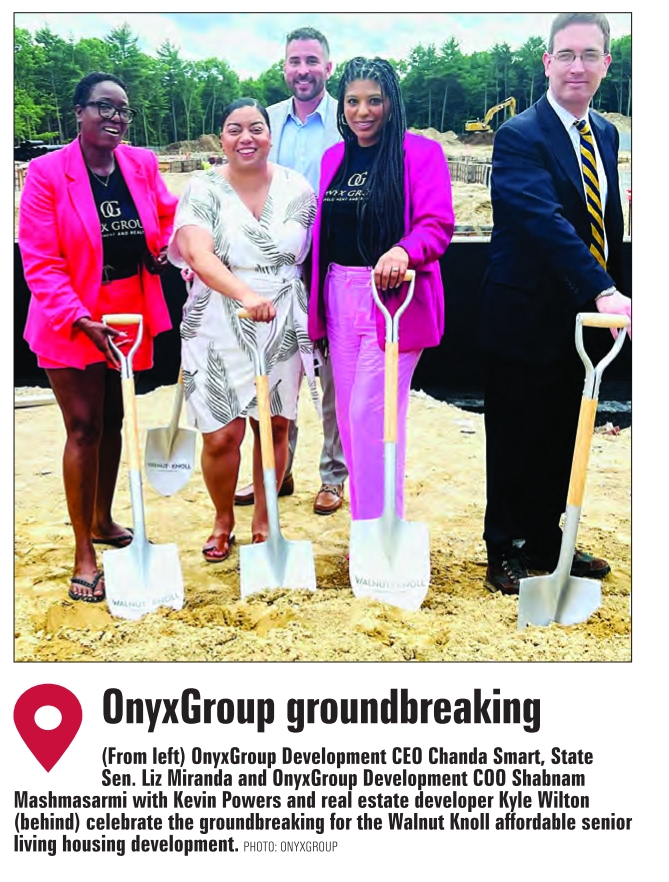 OnyxGroup groundbreaking (From left) OnyxGroup Development CEO Chanda Smart, State Sen. Liz Miranda and OnyxGroup Development COO Shabnam Mashmasarmi with Kevin Powers and real estate developer Kyle Wilton (behind) celebrate the groundbreaking for the Walnut Knoll affordable senior living housing development. PHOTO: ONYXGROUP