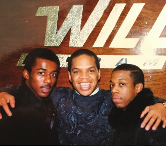 Elroy Smith is flanked by Ralph Tresvant and Michael Bivins of New Edition, 1980s.