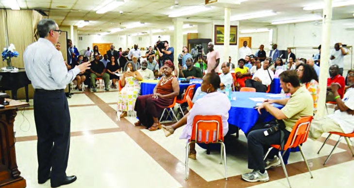 (ULEM), listens as a group of residents and community members discuss