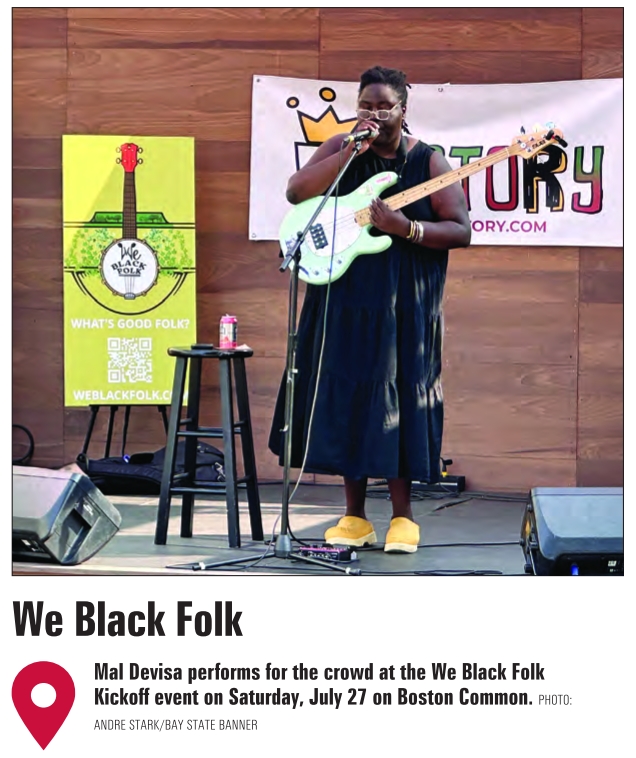 Mal Devisa performs for the crowd at the We Black Folk Kickoff event on Saturday, July 27 on Boston Common. PHOTO: