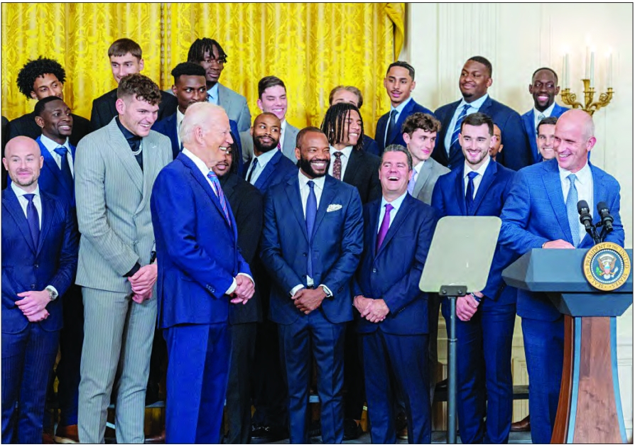 “We know that together, you capped off one of the most successful two-year runs in the history of the sport, ushering in a new era of UConn men’s basketball, passing the likes of Duke and Indiana for all-time national titles, and now there’s no doubt at all about who are the blue bloods of basketball,” said the president.