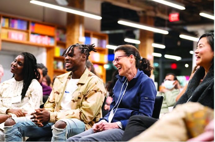 (above) Guests at a past Jar salon. (below) Participants enjoy a comedy performance at a Jar event.