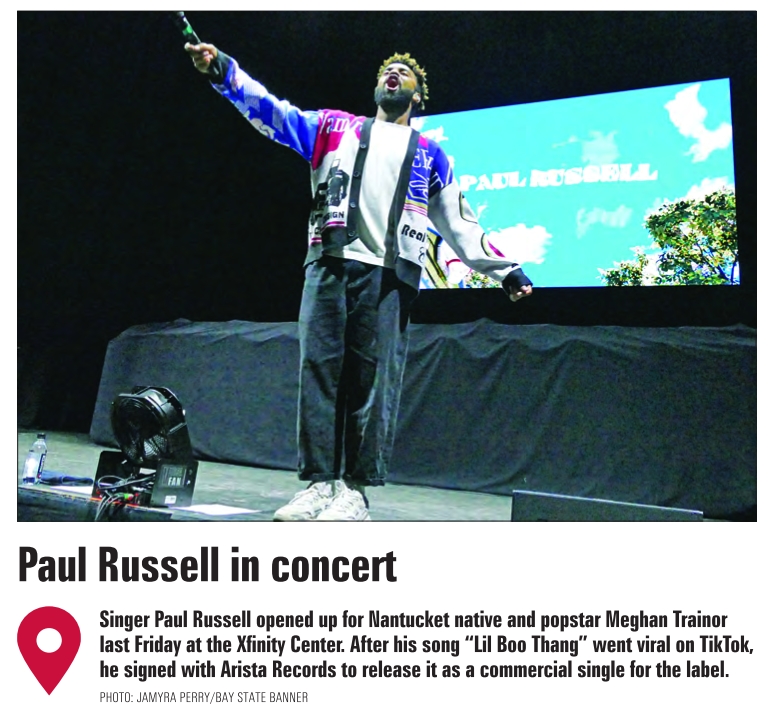 Singer Paul Russell opened up for Nantucket native and popstar Meghan Trainor last Friday at the Xfinity Center. After his song “Lil Boo Thang” went viral on TikTok, he signed with Arista Records to release it as a commercial single for the label.