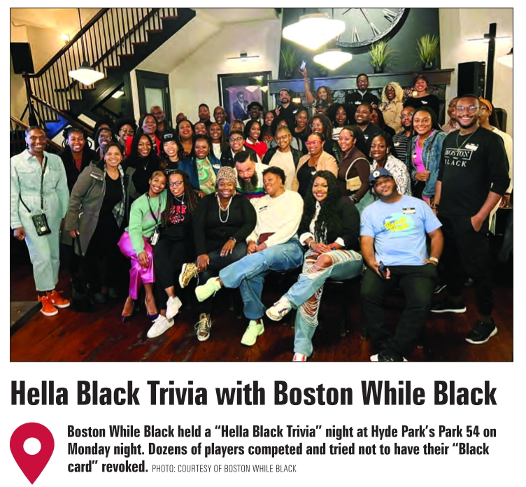 Boston While Black held a “Hella Black Trivia” night at Hyde Park’s Park 54 on Monday night. Dozens of players competed and tried not to have their “Black card” revoked. PHOTO: COURTESY OF BOSTON WHILE BLACK