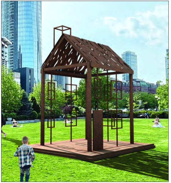 At the corner of Cross Street and Hanover Street in Boston’s North End sits a steel structure, a house with no walls that is both open to the public and exposed to it. “Going to Ground,” an installation by artist LaRissa Rogers on the Rose Kennedy Greenway, pays homage to Zipporah Potter Atkins, the first known Black woman homeowner in Boston.