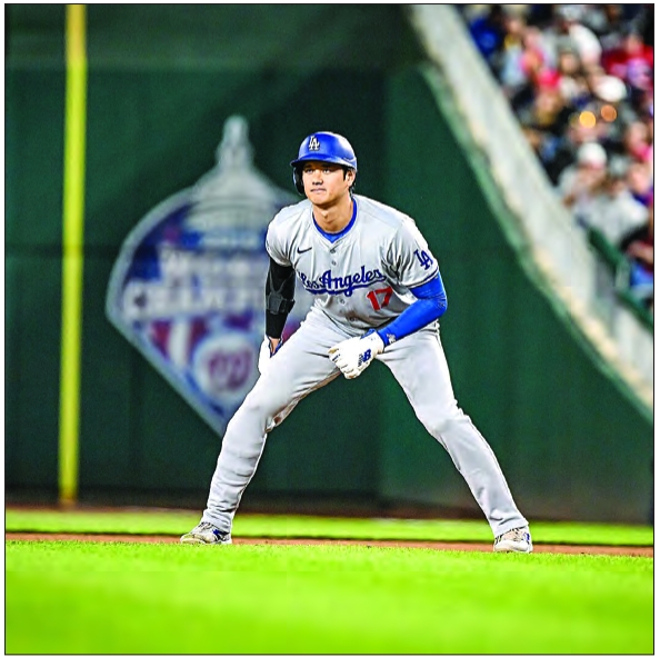 LA Dodger Shohei Ohtani takes a lead