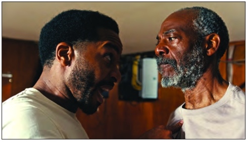 (above) André Holland as Tarrell and John Earl Jelks as his father La’Ron in “Exhibiting Forgiveness.” (below) Holland with Andra Day as Tarrell’s wife Aisha.