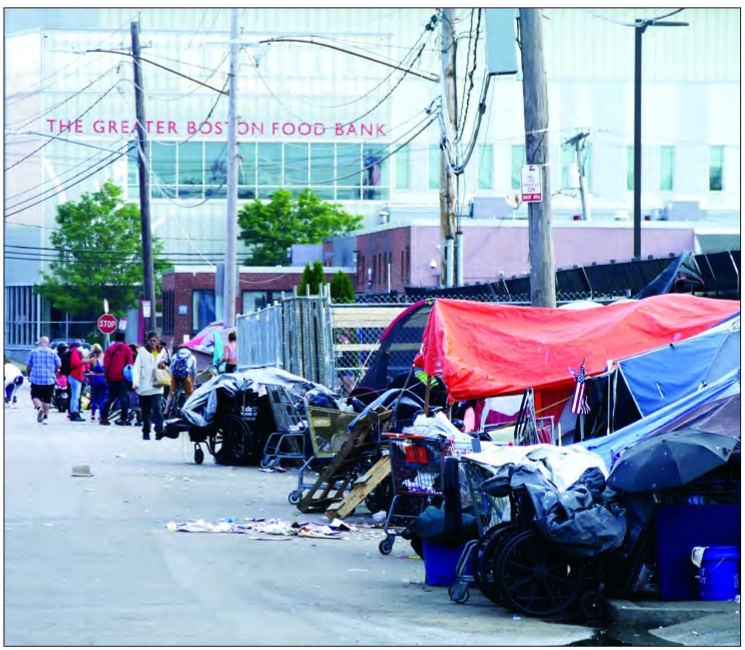 Encampment near intersection of Massachusetts Avenue and Melnea Cass Boulevard before tents were removed last year. Residents, families and business owners expressed concerns during a Boston City Council meeting last week about what they say is an increase in drug activity in their neighborhoods.
