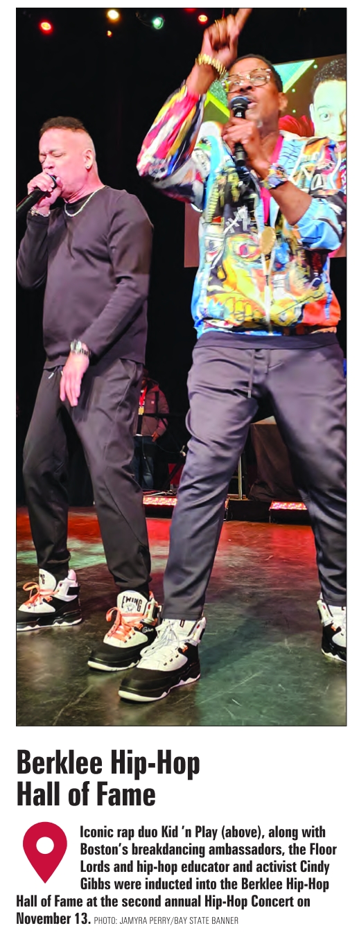 Berklee Hip-Hop Hall of Fame Iconic rap duo Kid ’n Play (above), along with Boston’s breakdancing ambassadors, the Floor Lords and hip-hop educator and activist Cindy Gibbs were inducted into the Berklee Hip-Hop Hall of Fame at the second annual Hip-Hop Concert on November 13. PHOTO: JAMYRA PERRY/BAY STATE BANNER