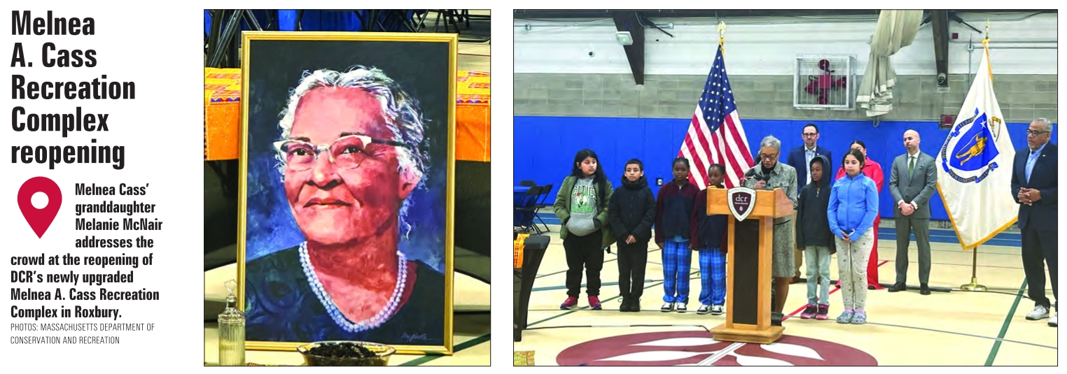 Melnea Cass’ granddaughter Melanie McNair addresses the crowd at the reopening of DCR’s newly upgraded Melnea A. Cass Recreation Complex in Roxbury.