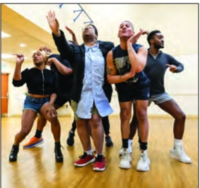 Cast members strike a pose in rehearsal for “A Strange Loop.”